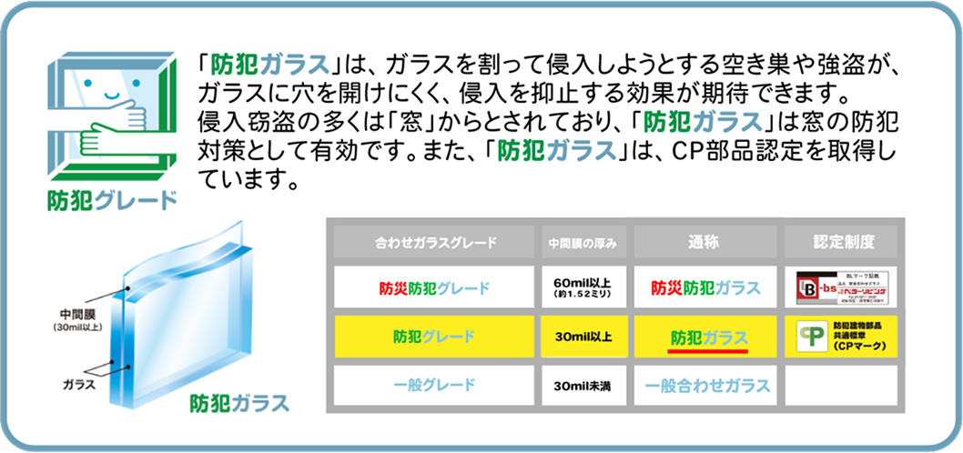 「防災防犯ガラス」「防犯ガラス」は