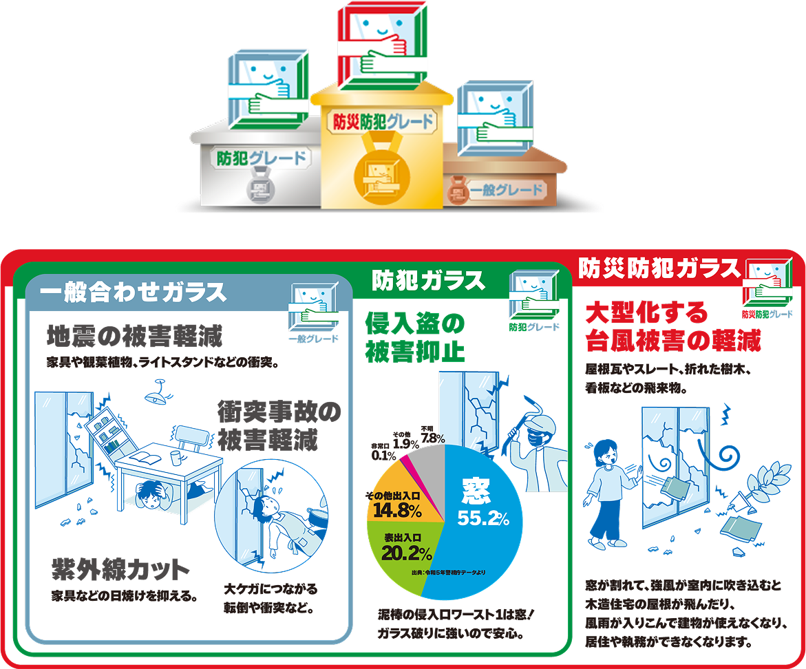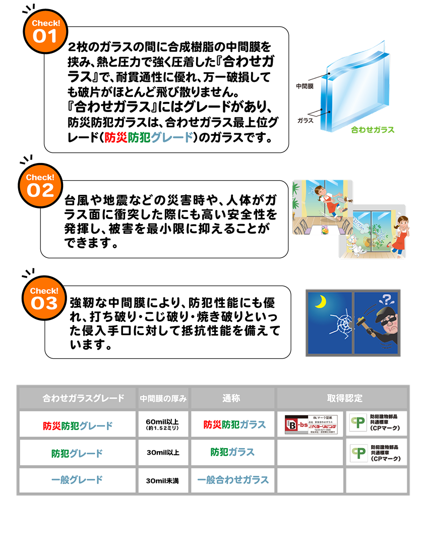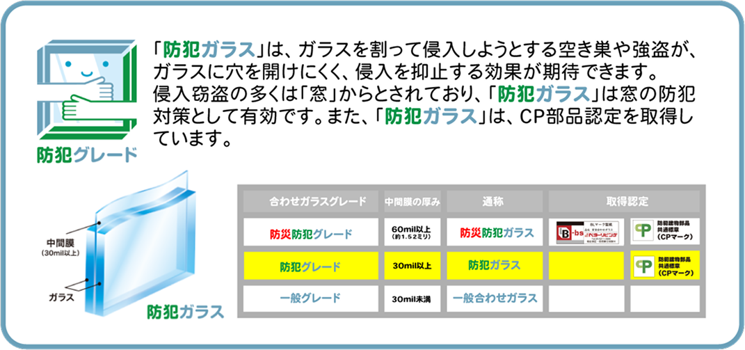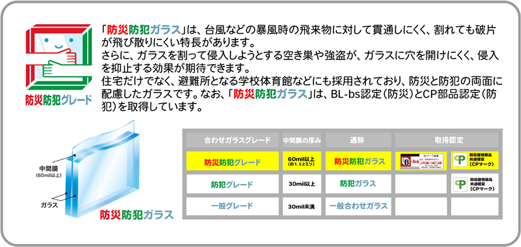 「防災防犯ガラス」「防犯ガラス」は